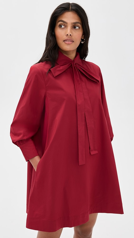 - Ruffled collar neckline and button placket