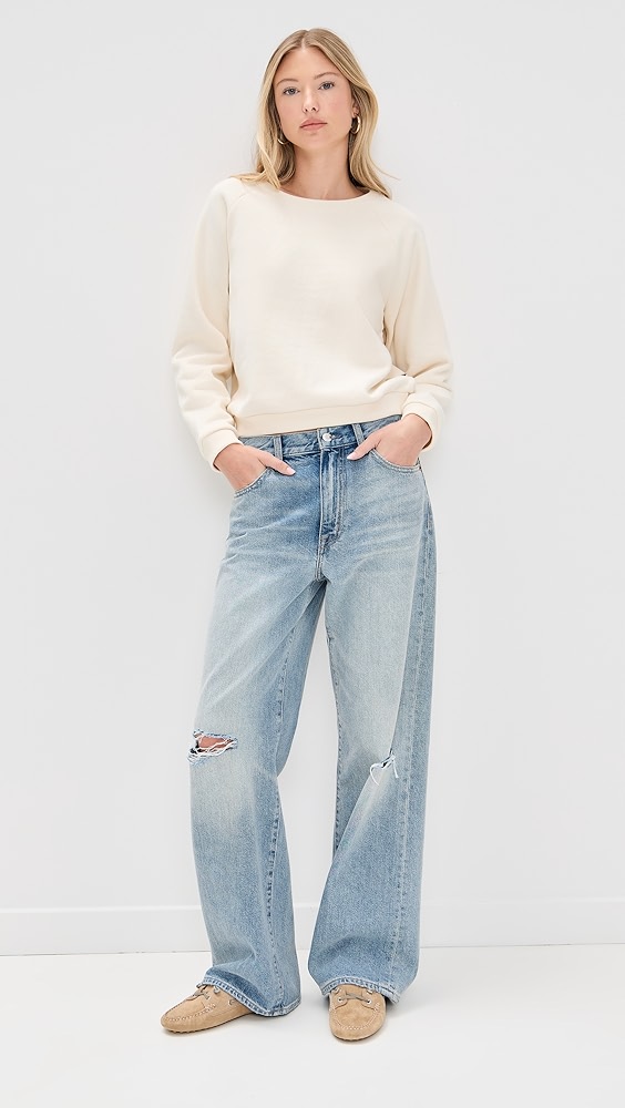 Intended to sit high at the waist. Finished with a slouchy wide leg. Non-stretch denim will soften and give with wear.