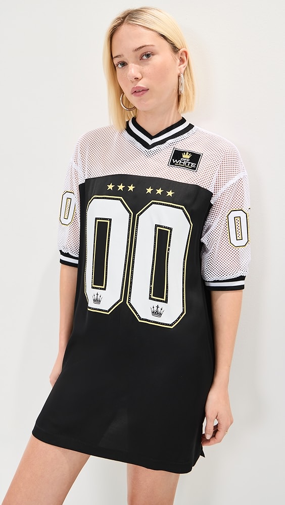 Features a relaxed cut and a mini length. Viscose-metallic knit fabric has a lightweight feel and offers ample stretch.